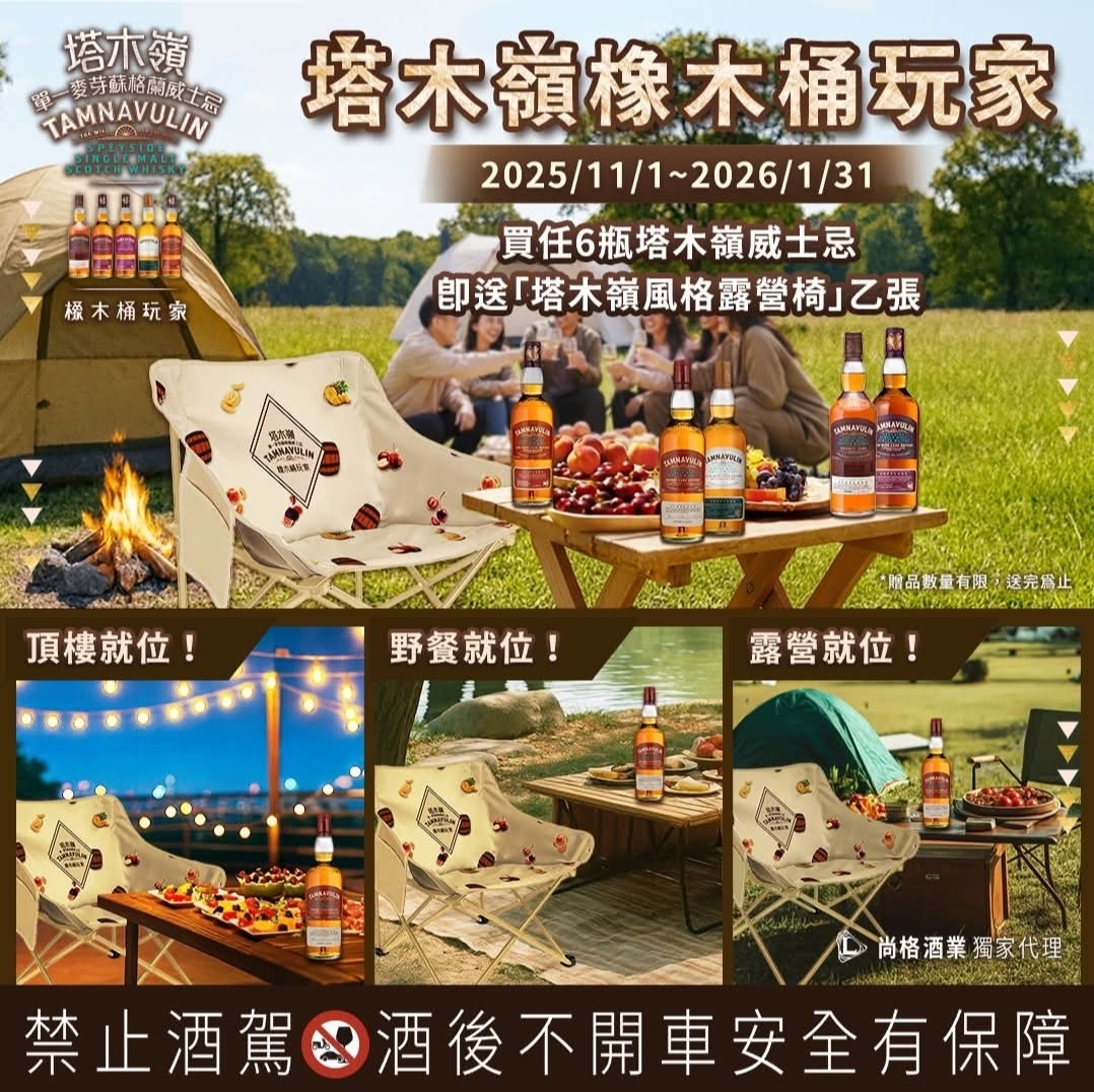 首頁 塔木嶺橡木桶玩家 2025/1/1~2026/1/31 買任6瓶塔木嶺威士忌 即送「塔木嶺風格露營椅」乙張 (露營椅體積大限自取,恕無法物流配送) 贈品有限,送完為止 https://1709.com.tw/index.php/search?keyword=塔木